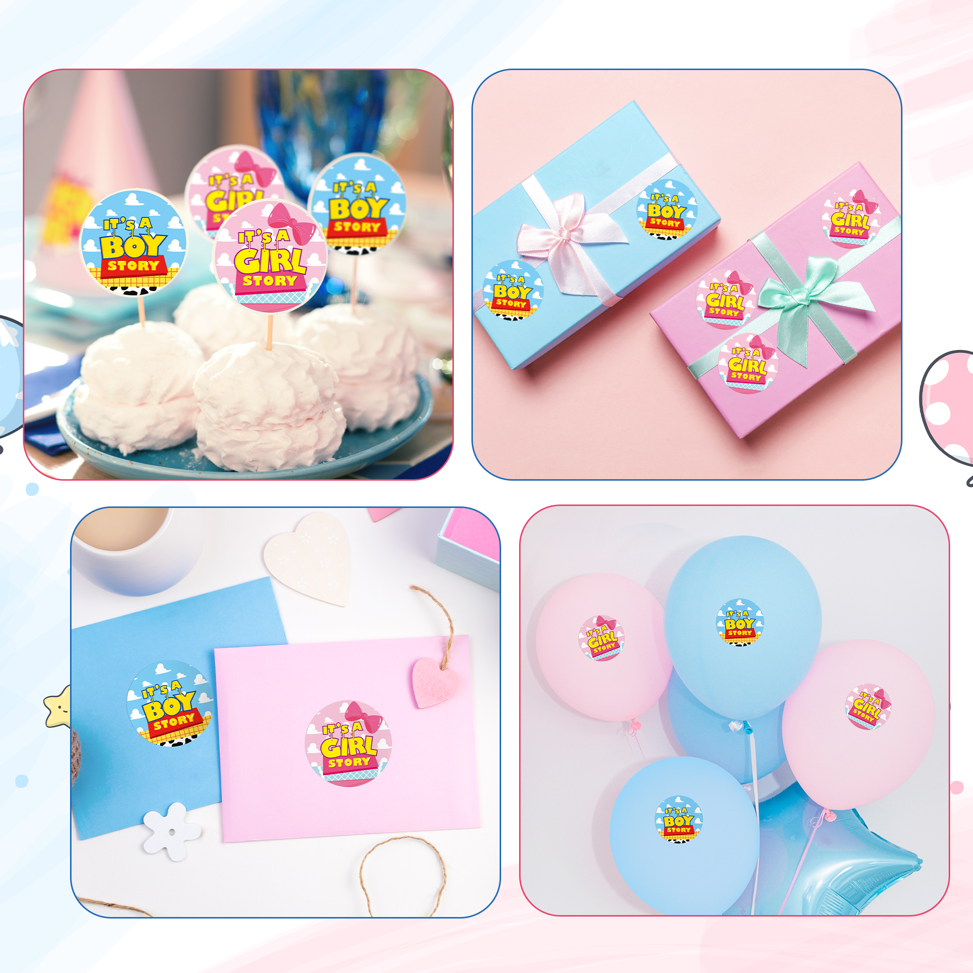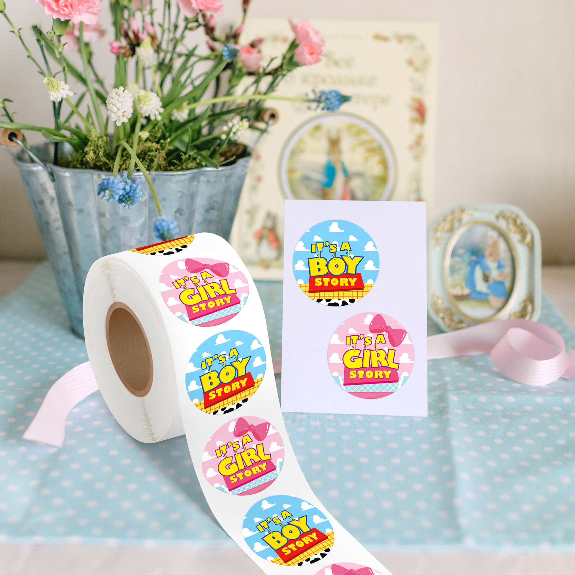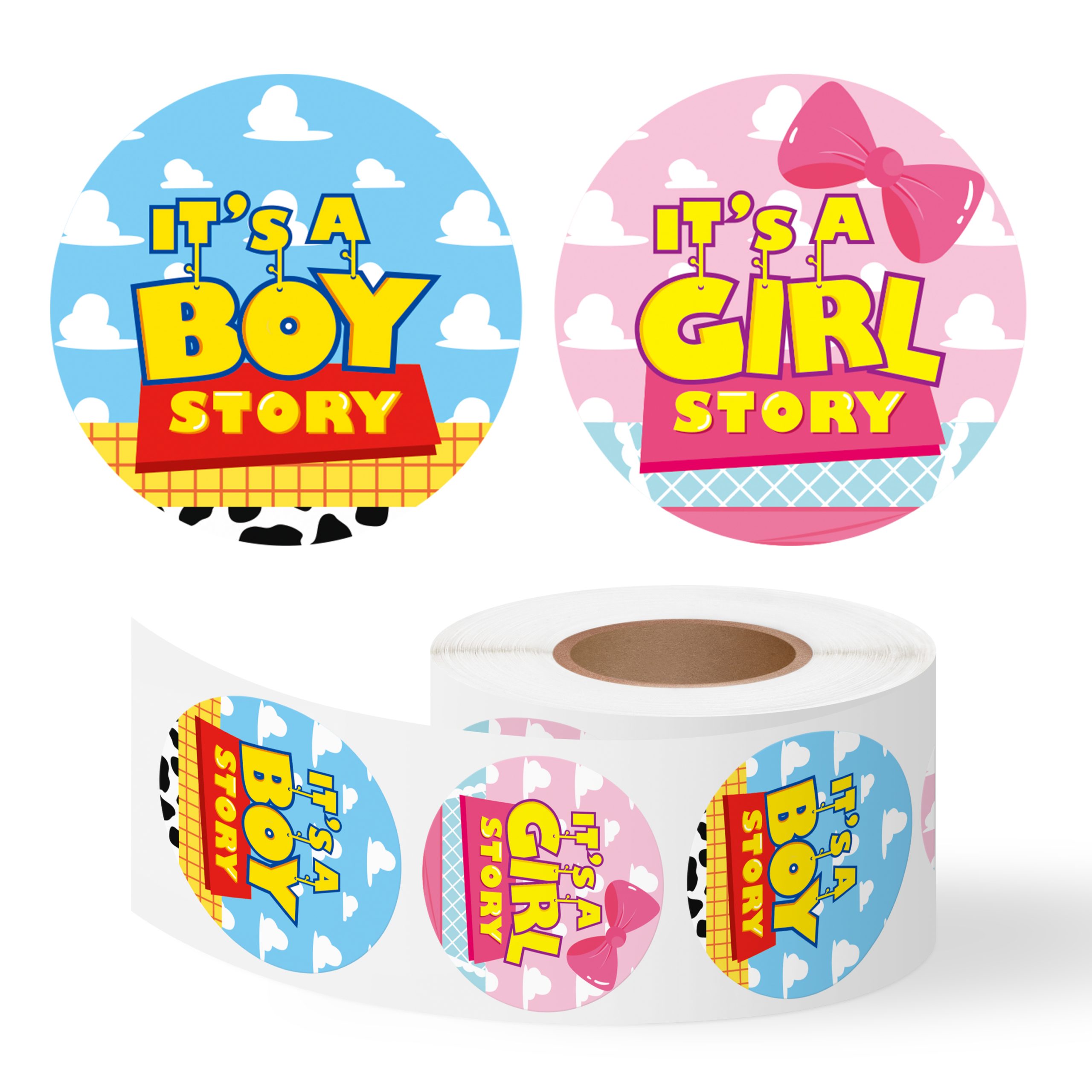 500Pcs Cartoon Boy or Girl Story Gender Reveal Stickers
