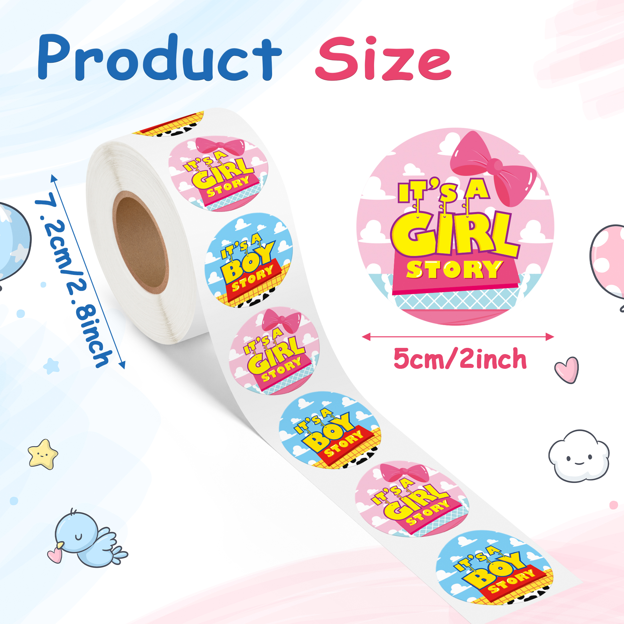 • Gender Reveal Party Perfection: 500Pcs cartoon boy or girl story gender reveal stickers roll is an ideal choice for your celebration. With 2 inch diameter stickers featuring vibrant cartoon pink and cartoon blue pattern designs with team girl or team boy, these self-adhesive gems will add a pop of color to your event, making it a memorable gender reveal party.