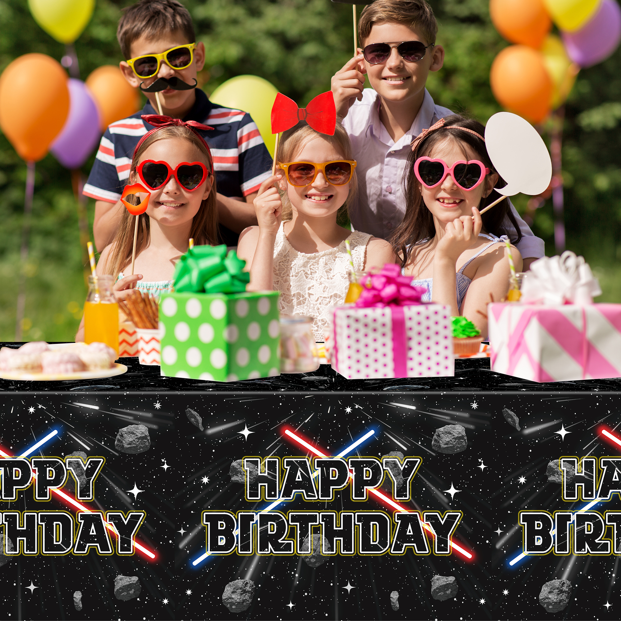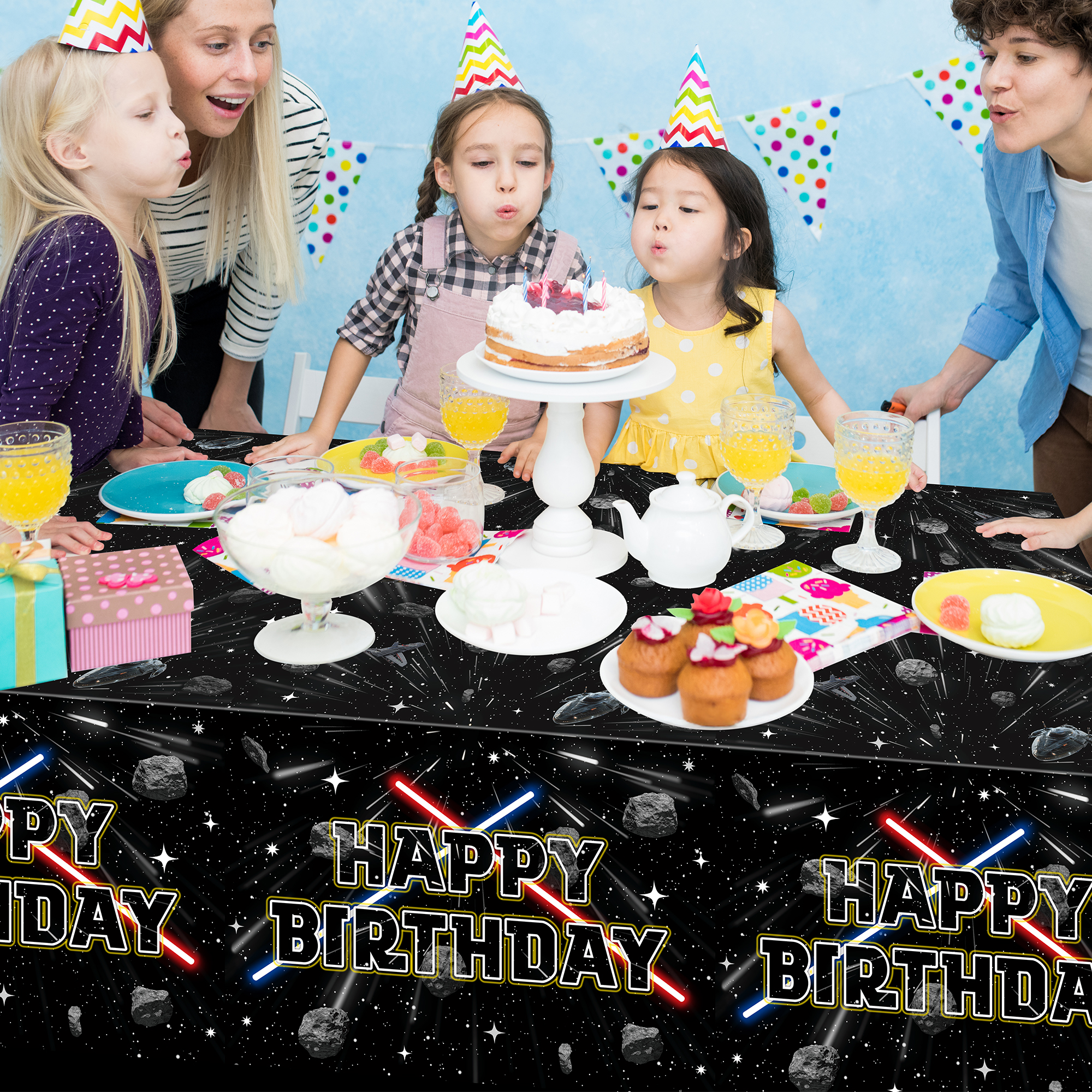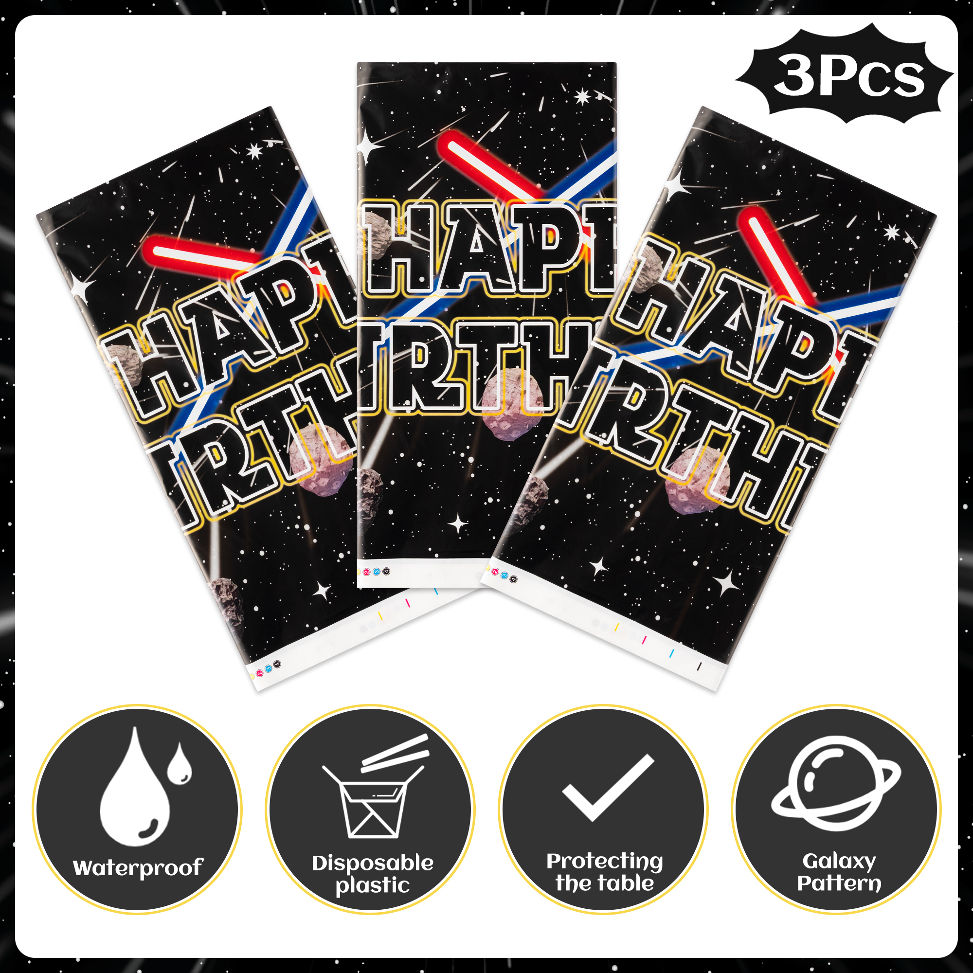 BOpusail 3Pcs Black Galaxy Movie Star Cartoon Themed Pattern Table Covers Happy Birthday Rectangular Waterproof Plastic Dinner Tablecloths Party Decor Supplies for Kids Birthday School Party 86 x 51in