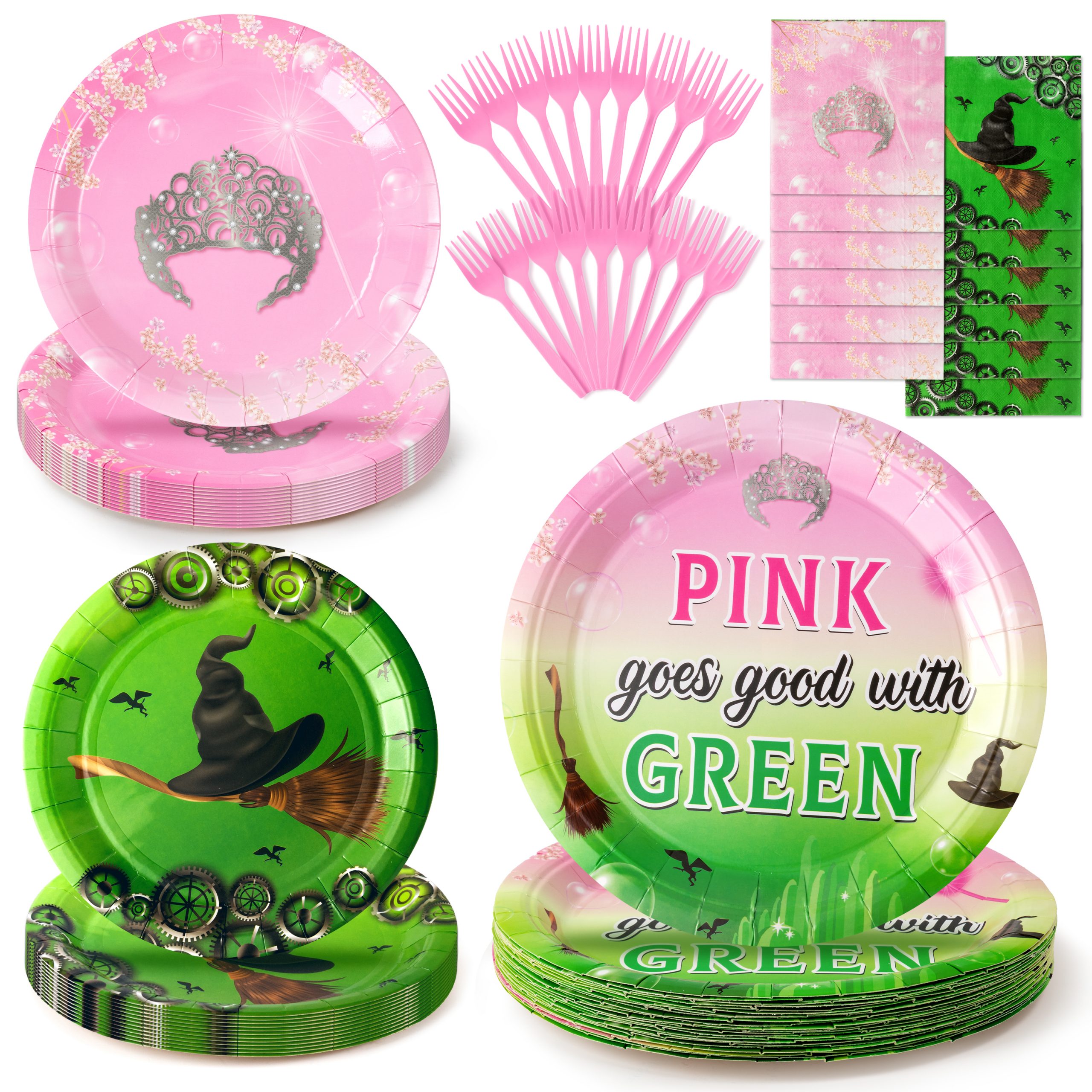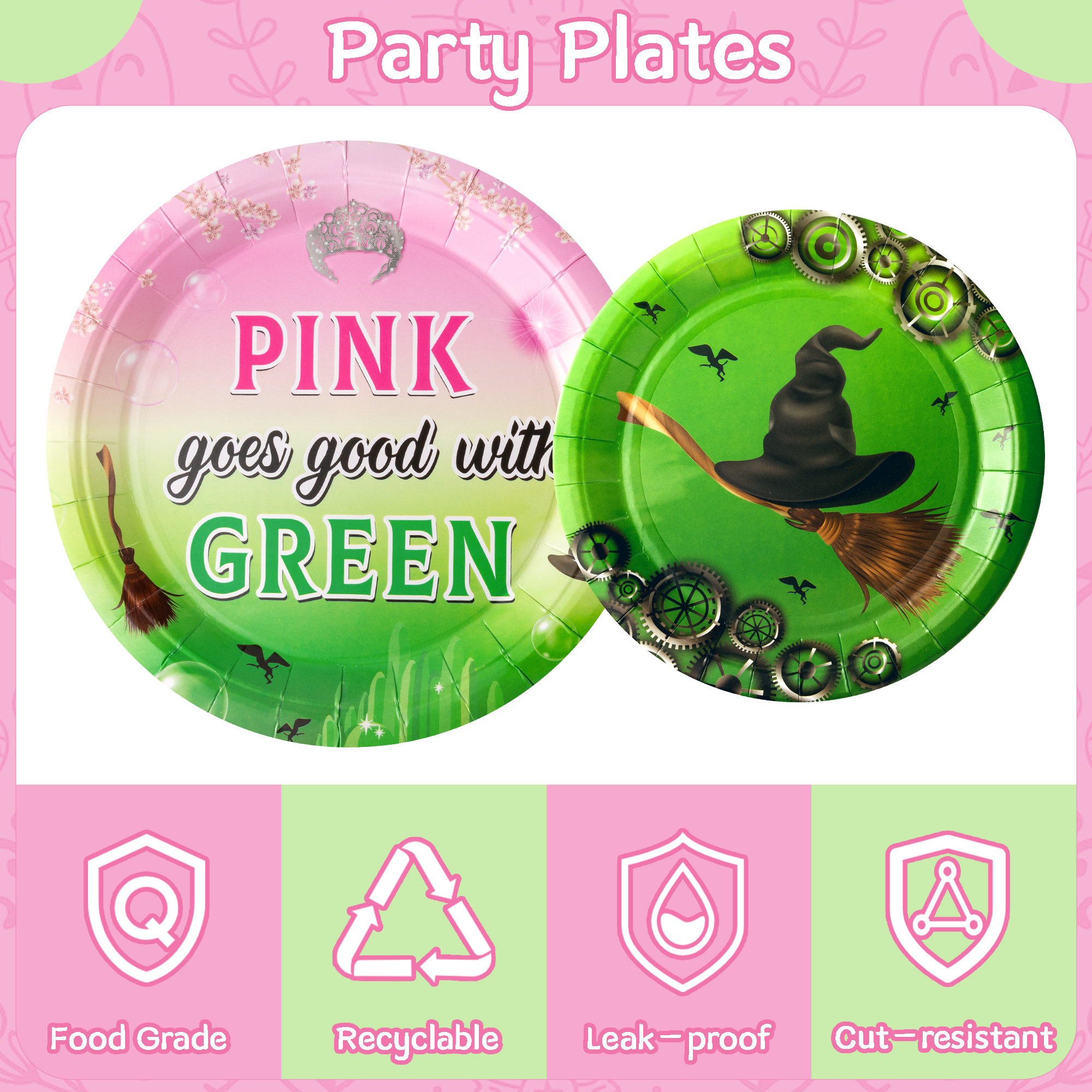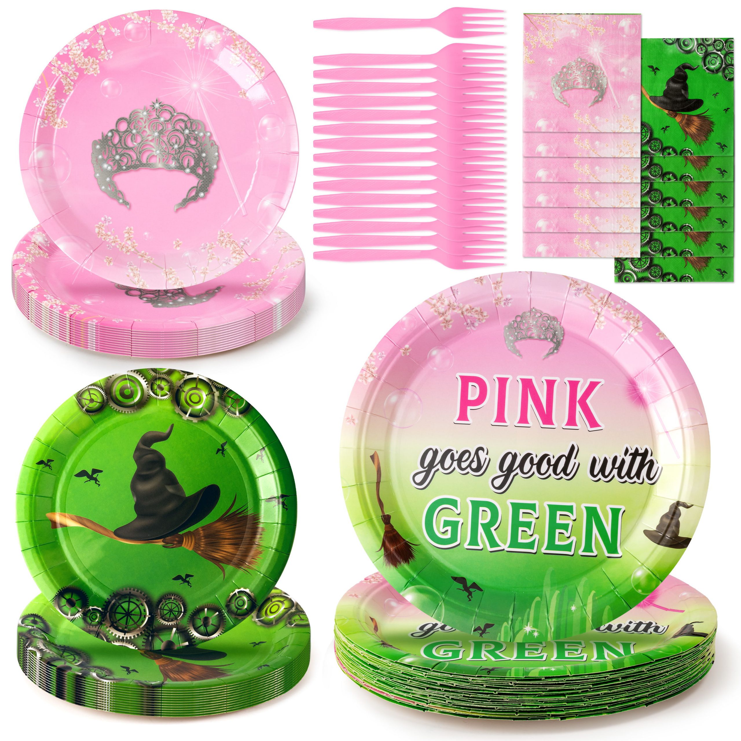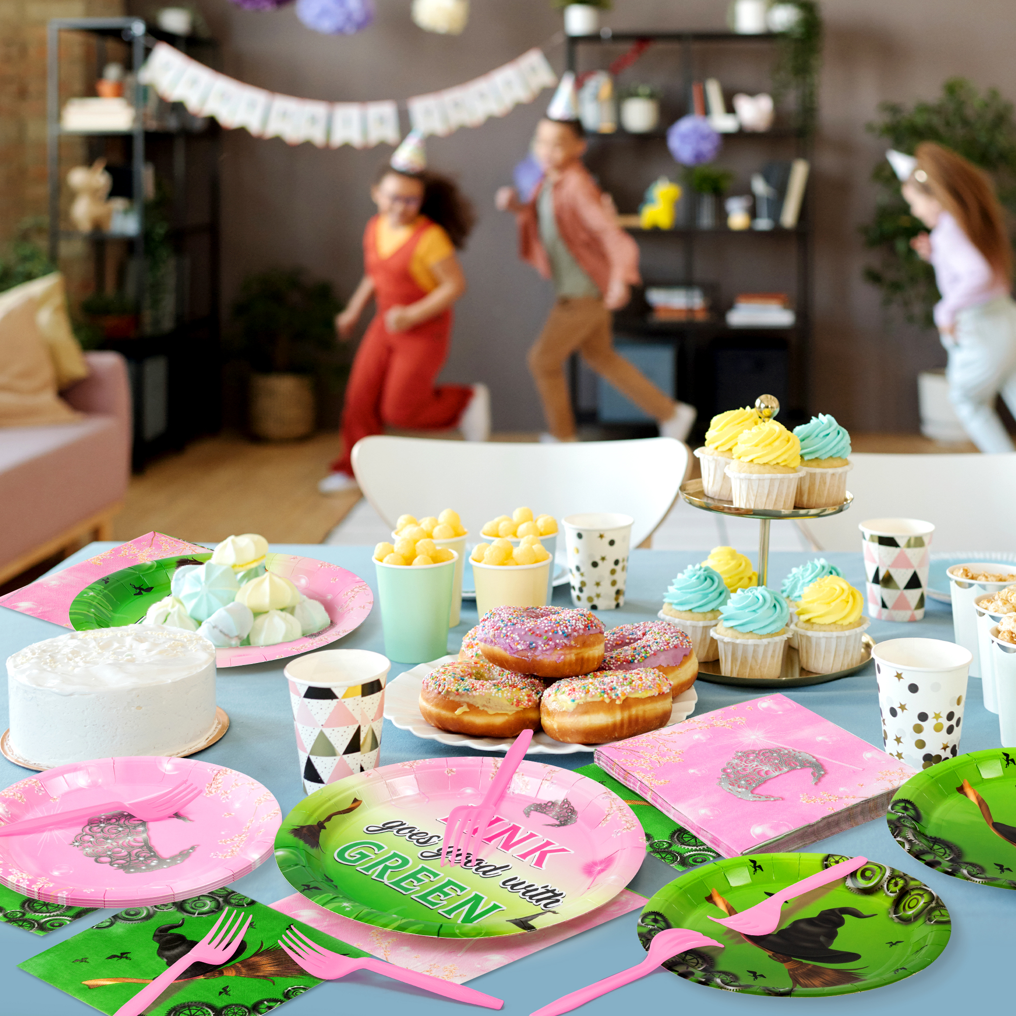 • Unique Themed Patterns: This party tableware set is printed with princess crowns and witch hats theme pattern, such as birthday cakes, flower, witch hat, princess crowns, stars and so on, it looks interesting and suitable for theme party to add pink and green theme atmosphere!