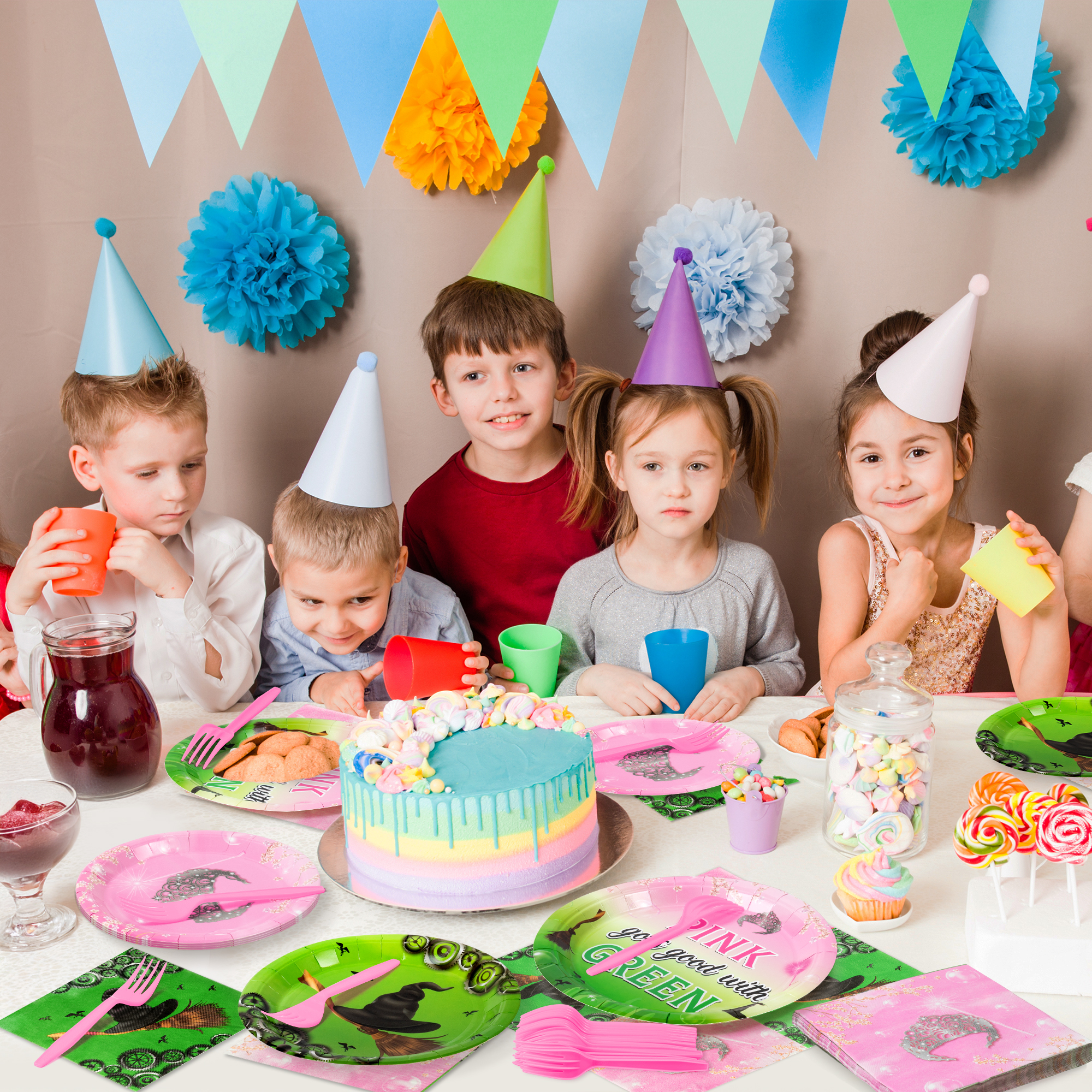 • Materials: All witch theme or pink princess theme party plates and napkins are made of food grade paper, forks are made of plastic, eco-friendly, safe, non-toxic, odorless.